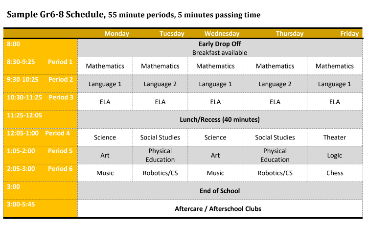 Sample Grade 6 – Grade 8 Schedule