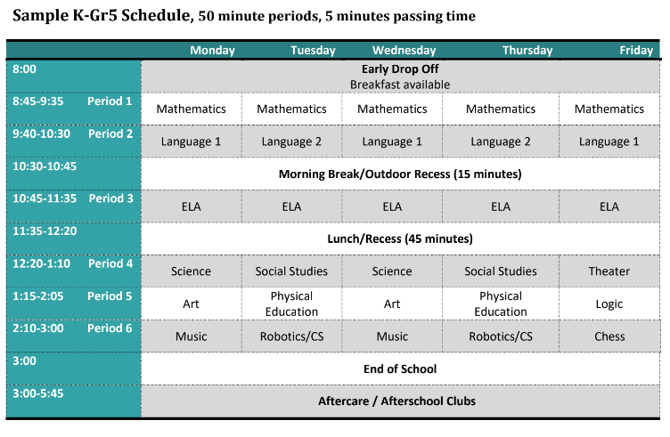 Sample Kindergarten – Grade 5 Schedule